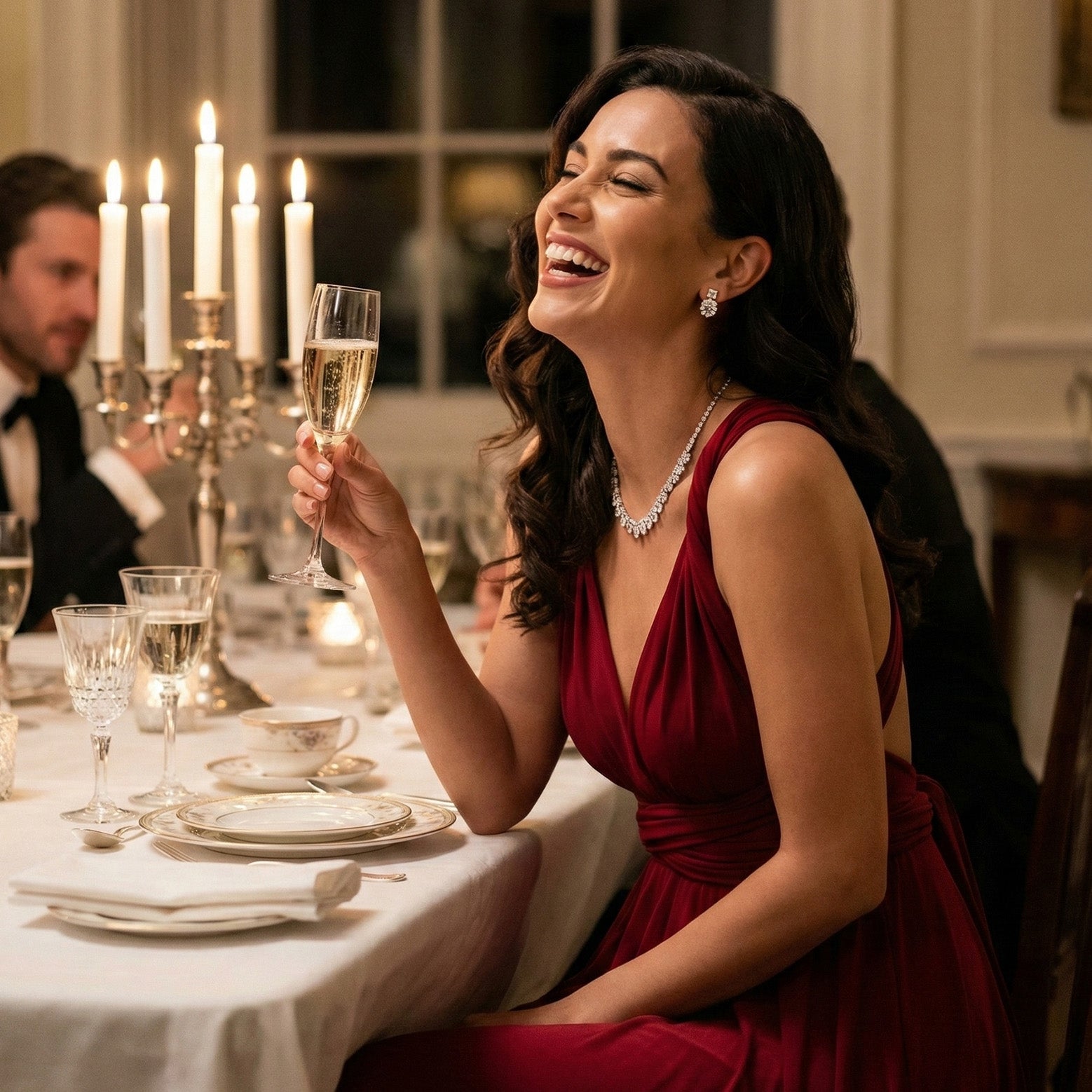 One dress, endless evening moments. Gown-level drape meets convertible versatility — from wedding aisles to gala nights.